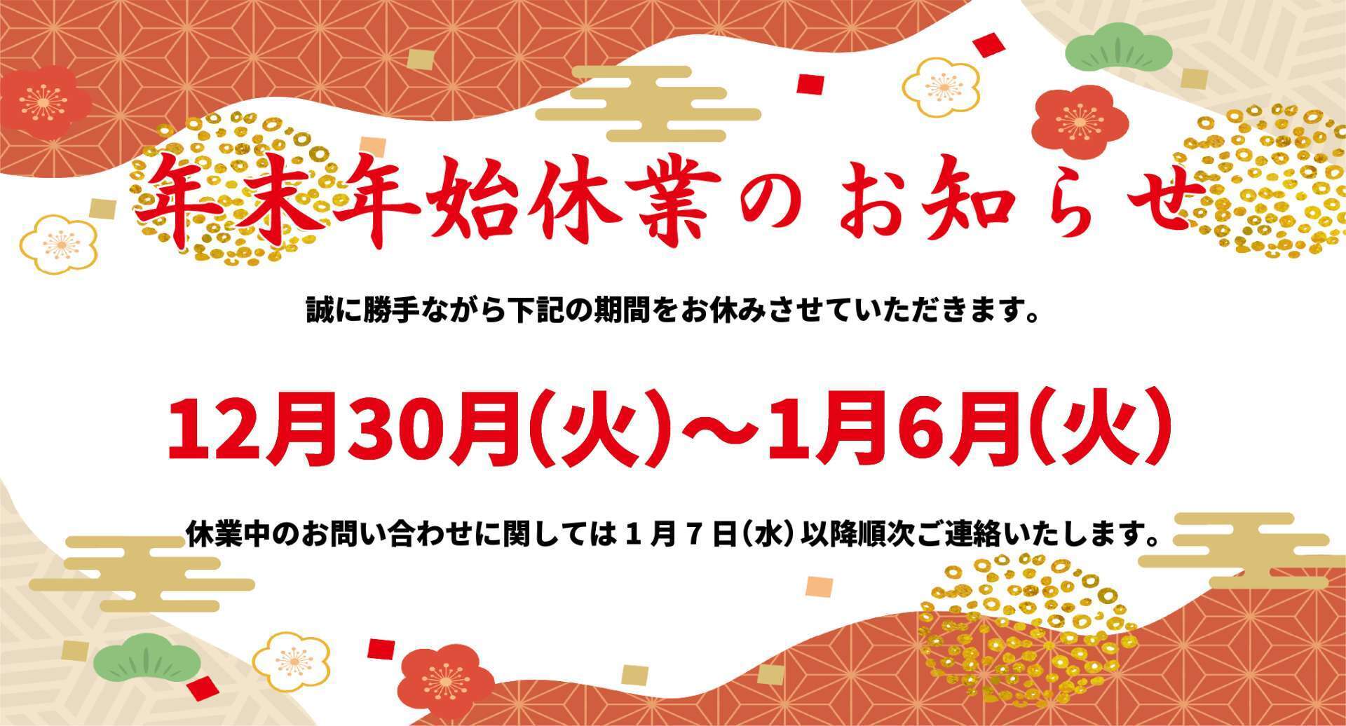 年末年始休業のお知らせ